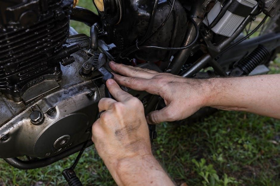 Minor repairs are essential for maintaining the Ariens AX 208cc engine’s performance and longevity. Regularly inspect for worn or damaged components like spark plugs, air filters, and belts. Replace spark plugs every 100 hours of operation to ensure proper ignition; Clean or replace the air filter as needed to maintain airflow. Check belts for cracks or wear and replace them if damaged. Lubricate moving parts periodically to reduce friction and prevent overheating. Always use genuine Ariens parts to guarantee compatibility and durability. For minor issues like loose connections or clogged fuel lines, consult the manual for step-by-step solutions. Addressing these repairs promptly prevents more severe damage and ensures reliable engine operation.