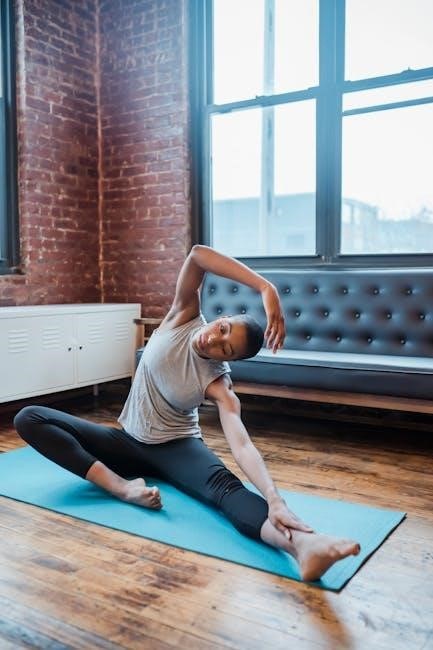 This stretch effectively targets the piriformis muscle, relieving tension and improving flexibility. It’s a great starting point for beginners and can be modified for intensity. Maintain a controlled movement and avoid overstretching.